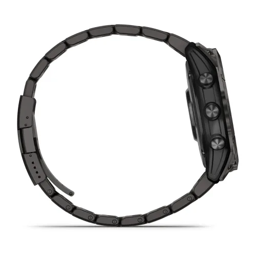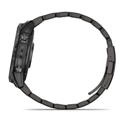 The resilient athletic design features a 1.4″ scratch-resistant sapphire solar charged display, responsive touchscreen, traditional buttons and 51 mm fiber-reinforced polymer case with a steel bezel and rear cover. This multisport watch is tested to U.S. military standards for thermal, shock and water resistance.