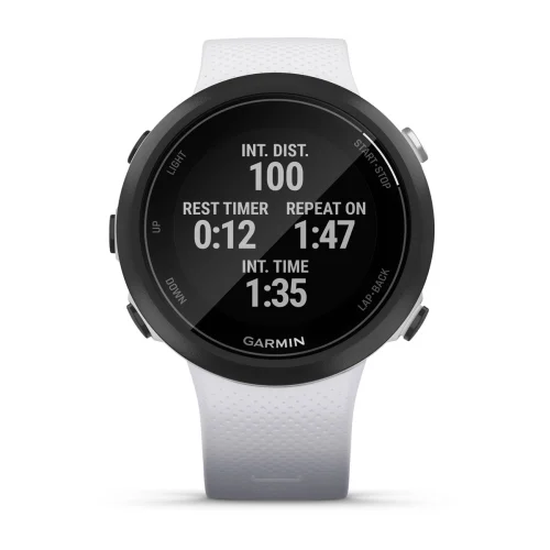 When you need a break, the Garmin Swim 2 smartwatch lets you track your rests with two types of timers.